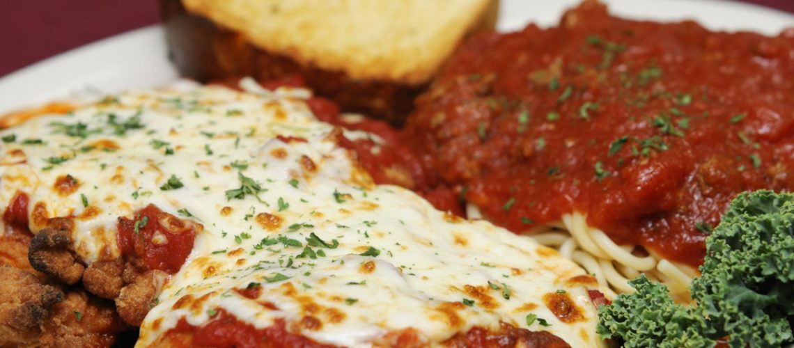 Pound chicken breasts until approximately 1/2″ thick. Dip chicken egg wash and then coat with dry bread crumbs. Heat skillet with 1/2″ of vegetable oil. Fry chicken breasts in oil until golden brown – don’t need to be fully cooked. Coat bottom of 9×13″ pan with spaghetti sauce. Place browned chicken breasts in pan. Top with remaining spaghetti sauce. Bake in 350° oven for 40 minutes. Top with shredded mozzarella cheese. Bake an additional 10 minutes or until cheese is melted and slightly browned.